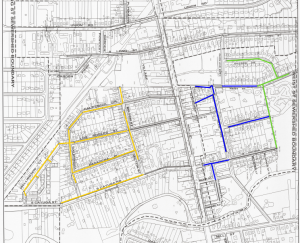 Streets highlighted in blue have been completed the streets highlighted in green will be completed first and then the streets in yellow.